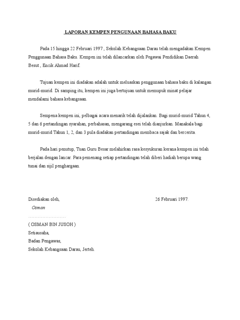 Penulisan Laporan Kempen Penggunaan Bahasa Baku Pdf
